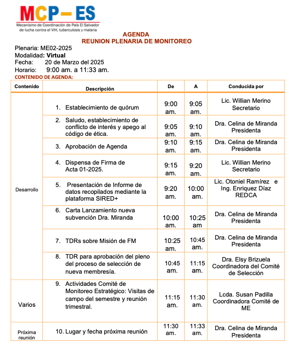 Plenaria de Supervisión